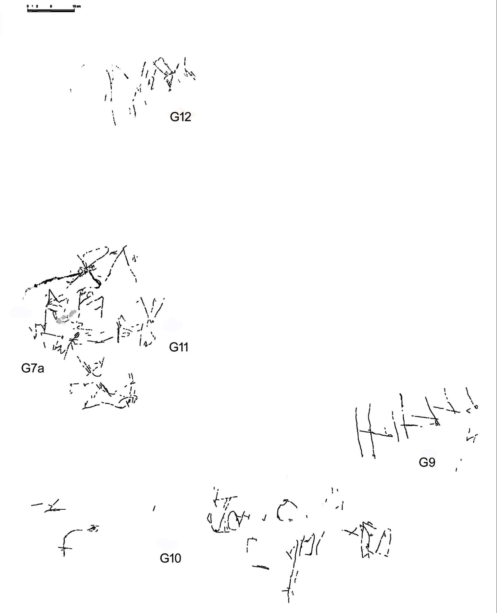 Situado a unos 26 cm por encima del G11, integra trazos de tendencia vertical e inclinada que podrían corresponder a inscripciones ibéricas.